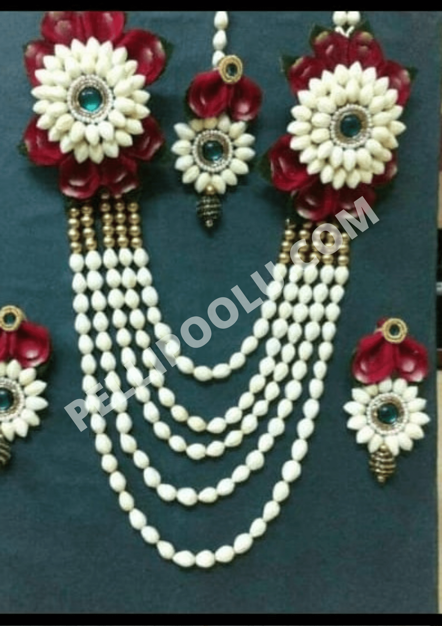 MATERIAL USED: Fresh Rose Petals (Dutch Flower), Tagar Flowers (A type of Jasmine Flower), Artificial Well Polished And Attractive Stones, Standard Threads, Special Cloth Tissues.